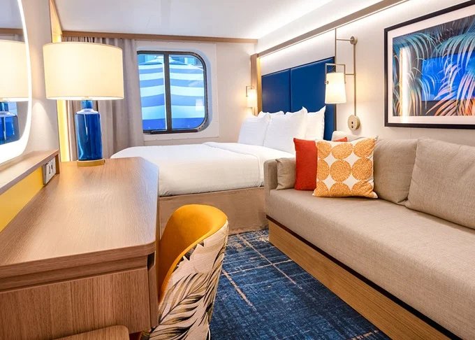 T5 - Vnútorná kajuta s oknom / Surfside Family 17 m². Neotvárateľné okno s výhľadom na štvrť Surfside. 8. paluba vpredu. Max 3-4 osoby. 4 641 € 1 547 € za osobu