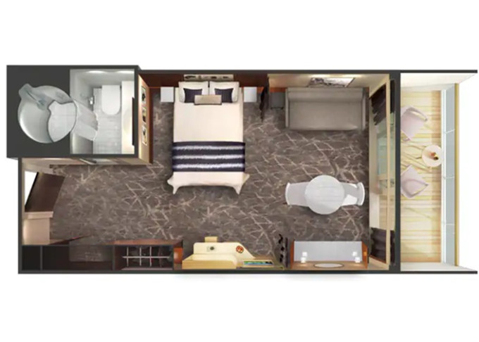 SE - Forward-facing Penthouse 51-52 m² / balkón 18-22 m². 8,9. paluba - vpredu. Max 3-5 osôb. Výhody Suite. 7 556 € 3 778 € za osobu