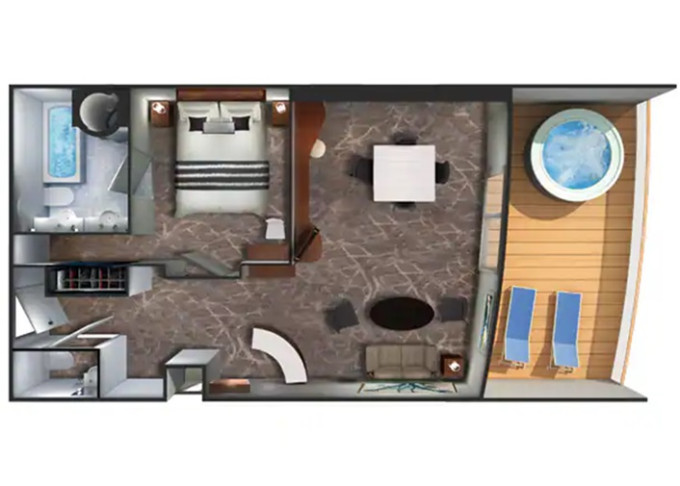 SA - Owner's Suite 77 m² / balkón 32 m². Vírivka. 8/9. paluba - vpredu. Max 5 osôb. Výhody Suite. 10 352 € 5 176 € za osobu