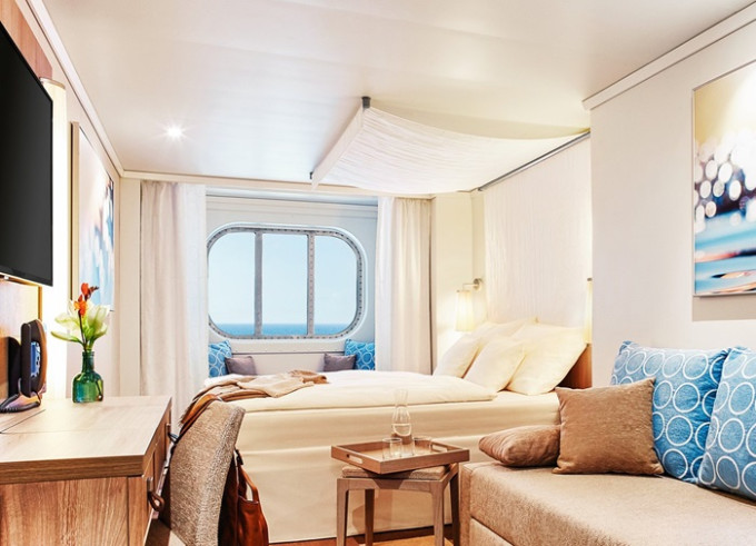 JA - Junior Suite s balkónom PREMIUM34 m² + terasa 27,5 m². 8. až 15. paluba. Max 4 osoby. Cenový model Premium + výhody Junior Suite.
