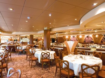 Le Maxim´s (6. paluba) s kapacitou 714 hostí. Otvorená pre večere. Pri večeri je zasadací poriadok a turnusy o 19:00 a 21:30.