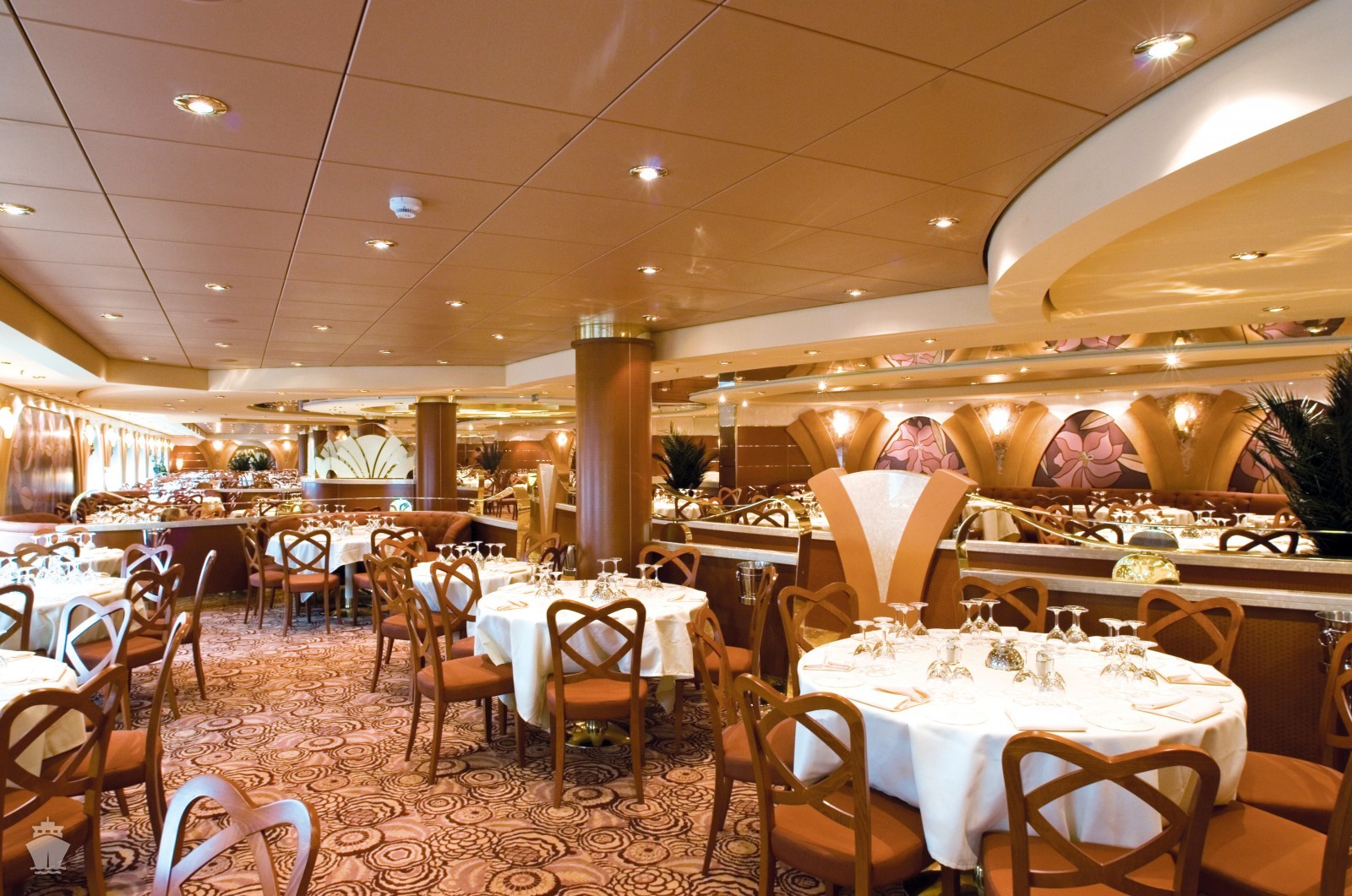 Le Maxim´s (6. paluba) s kapacitou 714 hostí. Otvorená pre večere. Pri večeri je zasadací poriadok a turnusy o 19:00 a 21:30.