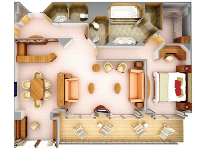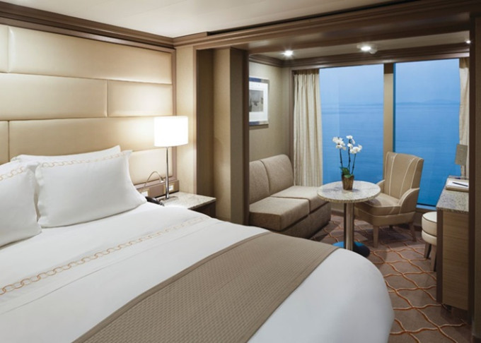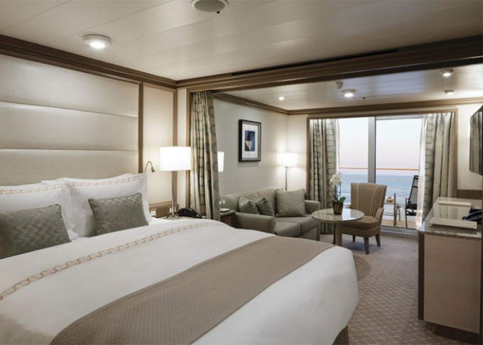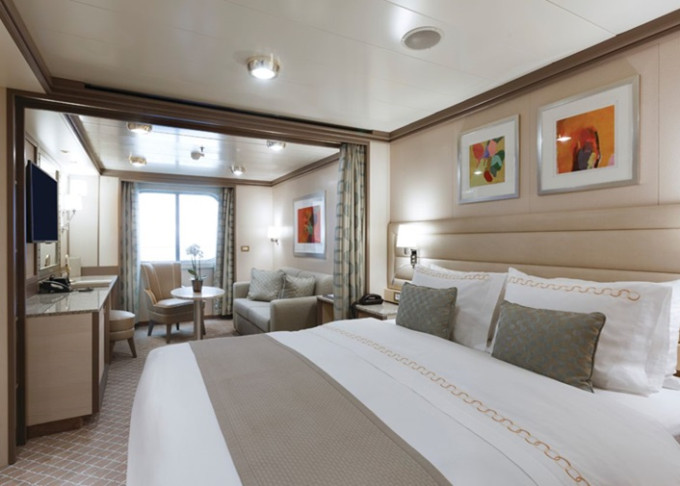| R1 - Royal Suite 1 92 m² (vrátane balkóna 12 m²), Spálňa s obývacou a jedálenskou časťou. 7. paluba vpredu. Max 3 osoby. | 34 800 € 11 600 € za osobu | ||