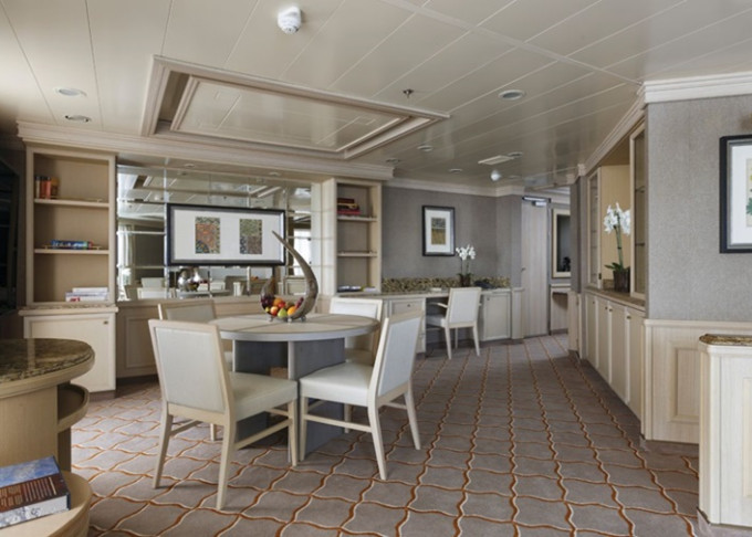 | O1 - Owner's Suite 1 120 m² (vrátane balkóna). Spálňa, oddelená obývacia časť, jedáleň. 8. paluba stred. Max 3 osoby. | 56 000 € 14 000 € za osobu | ||